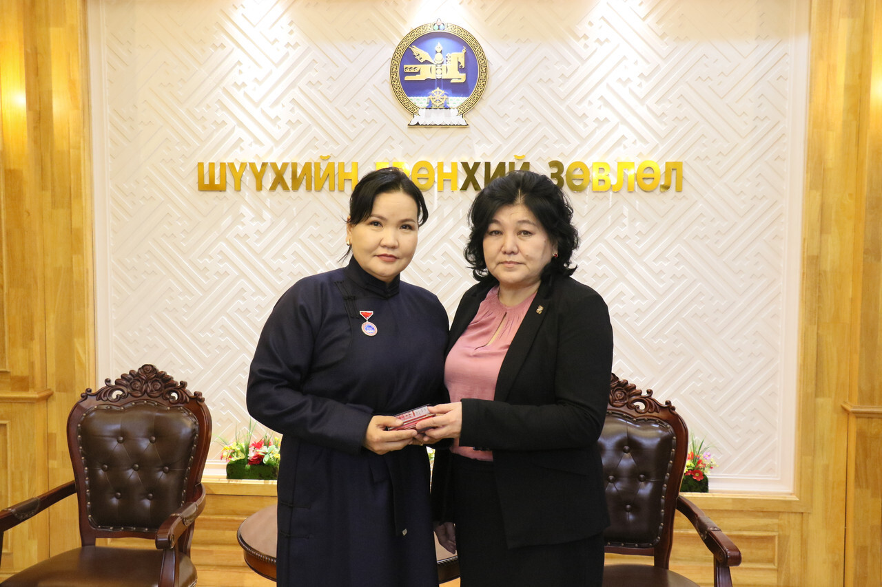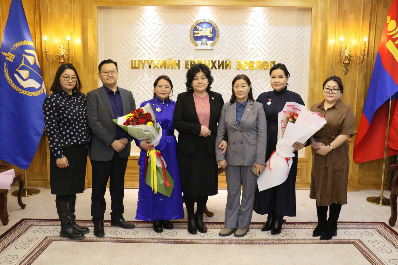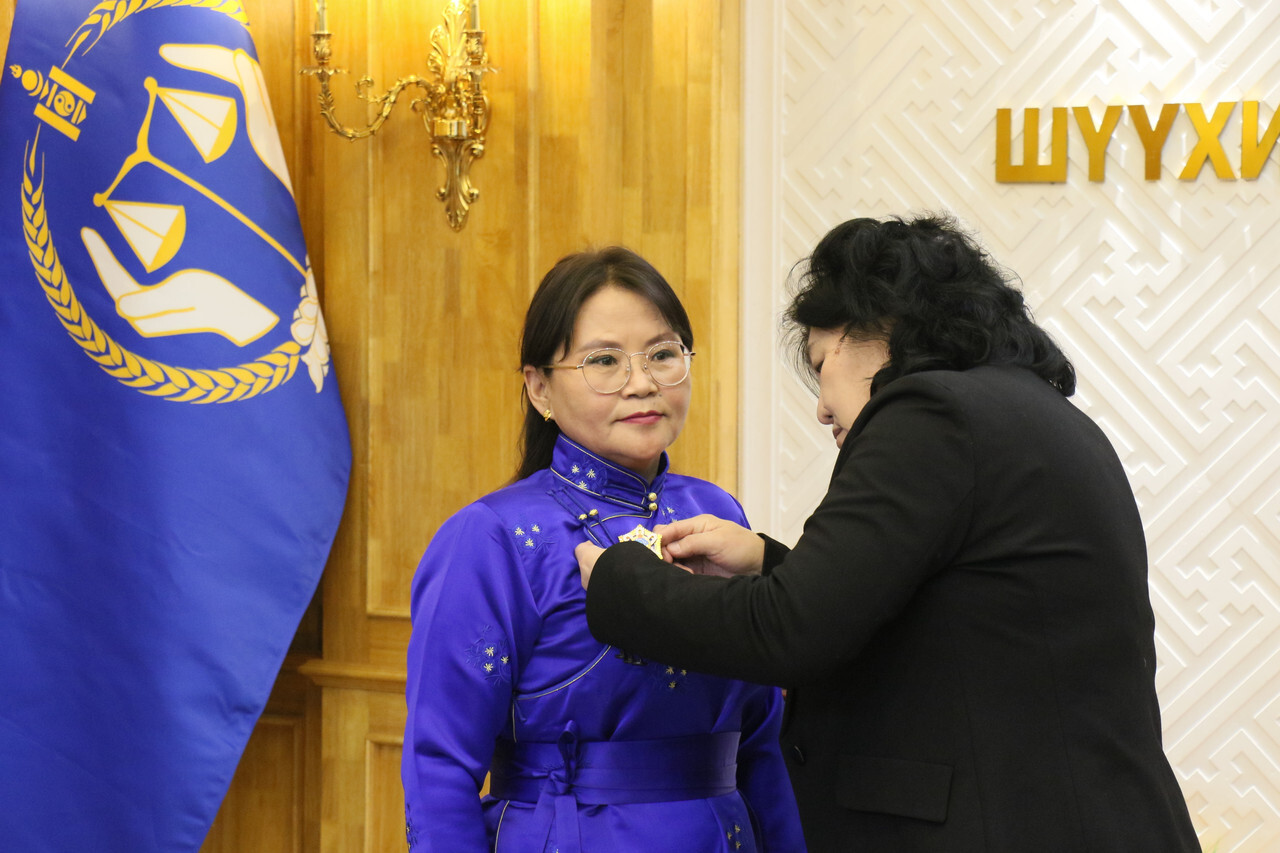 Шүүхийн ерөнхий зөвлөлийн дарга П.Золзаяа өнөөдөр (2026.02.04) Алтан гадас одонгоор шагнагдсан Ховд аймгийн Булган сум дахь сум дундын шүүхийн Ерөнхий шүүгч Баттулгын Бадрахгэрэл, Хөдөлмөрийн хүндэт медалиар шагнагдсан Ховд аймгийн Булган сум дахь сум дундын шүүхийн шүүгч Лхагважавын Түвшинжаргал нарт шагналыг нь гардуулан өглөө.