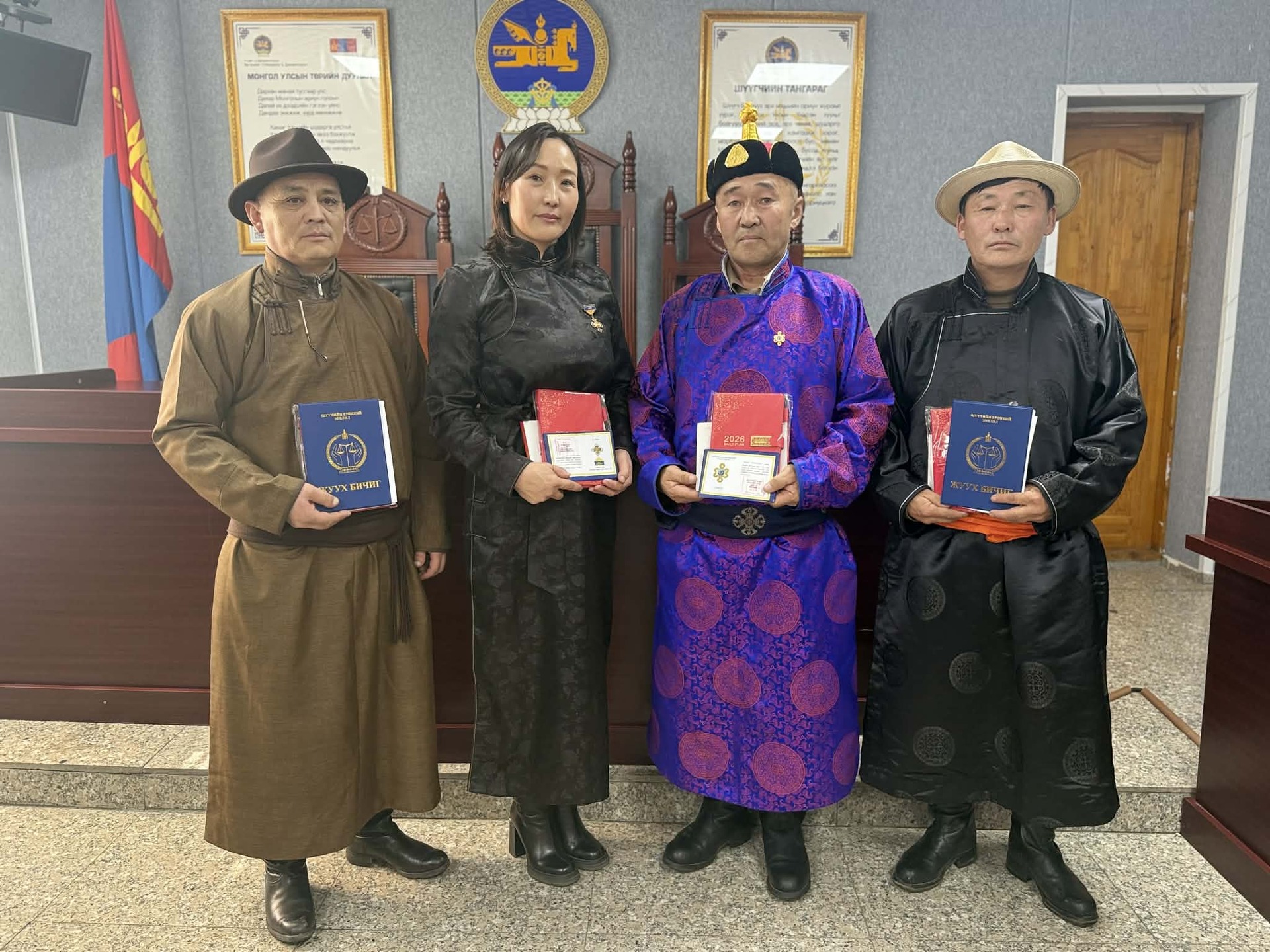2026-02-16 00:00:00 | 88Шүүх, шүүхийн захиргааны байгууллагад олон жил үр бүтээлтэй ажилласан тус шүүхийн захиргааны ажилтнуудыг, Шүүхийн ерөнхий зөвлөлийн даргын тушаалаар салбарын шагналаар тус тус шагнаж урамшууллаа.Эрхэлсэн ажил, салбартаа манлайлан ажиллаж, хуулиар хүлээсэн үүргээ нэр төртэйгөөр биелүүлж, төрийн бодлого, зорилт, чиг үүргийг хэрэгжүүлэх үйл хэрэгт үнэтэй хувь нэмэр оруулсныг үнэлж "Шүүхийн тэргүүний ажилтан" цол тэмдэгээр шүүгчийн туслах Ц.Отгонжаргал, Шүүхийн ерөнхий зөвлөлийн "Хүндэт Тэмдэг"-ээр нярав М.Баатарцол, "Жуух бичиг"-ээр бичиг хүргэгч Ю.Гэрэлтзул, үйлчилгээний ажилтан Ш.Нямдаваа нарыг тус тус шагнаж урамшууллаа.